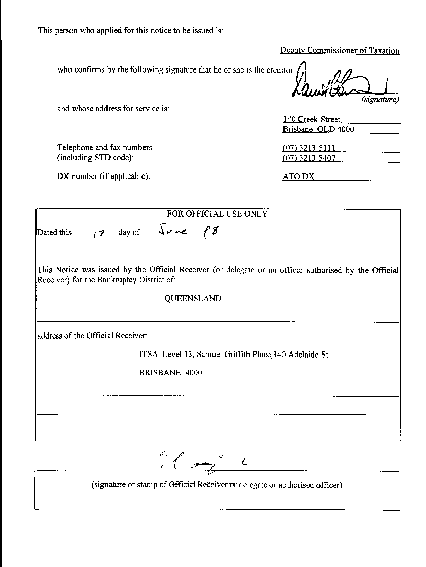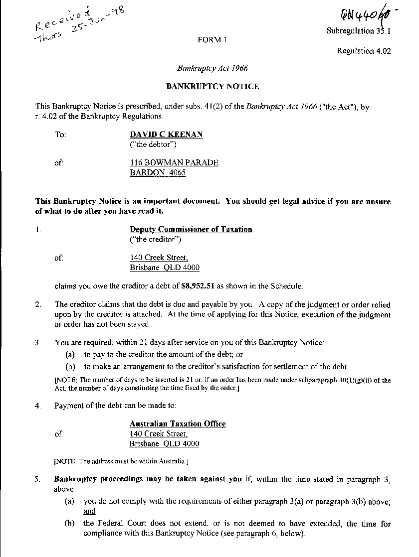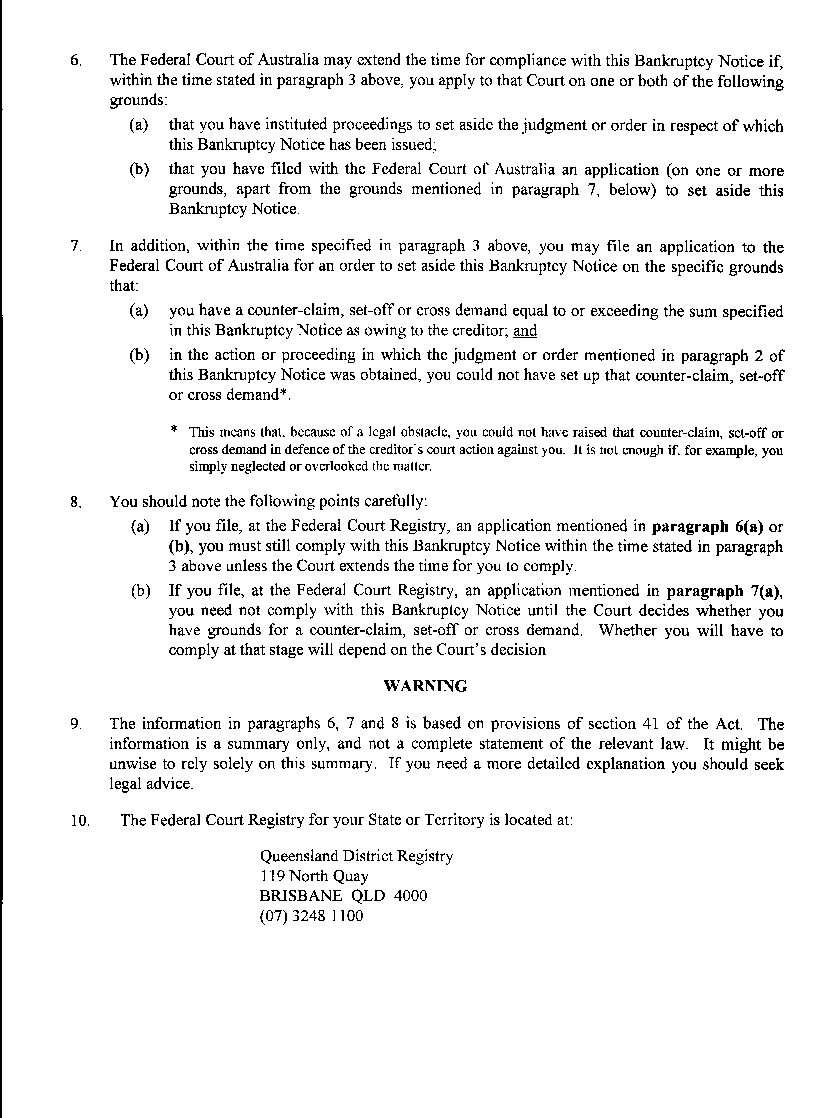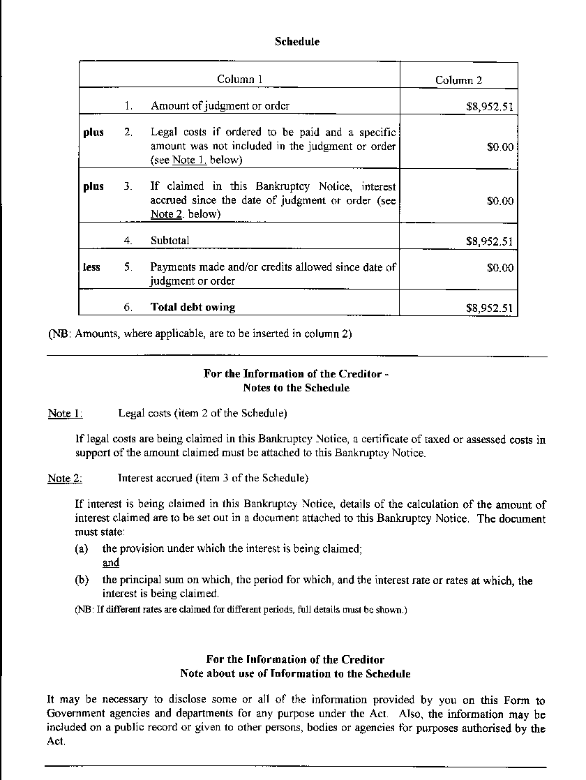 The pages of the bankruptcy notice: