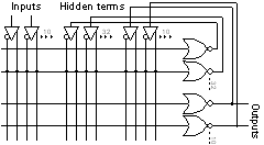 Most PLDs have an additional fuse for each output to determine whether the output is to be direct or complemented. In a two layer NOR net this has the effect of changing from CNF (conjunctive normal form) to DNF (disjunctive normal form) when inputs are also exchanged for their complements. Most functions require fewer hidden units in one form than in the other so it would be useful if the net could learn this fuse as well. This may be as simple as determining whether the output is more often true (DNF) or false (CNF) over the input combinations.