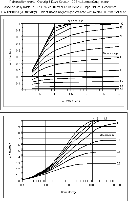The following approximate rules for calculating the rain fraction f within ±0.15, work for collection factors between 0.5 and 2.0, and storage up to 100 days.