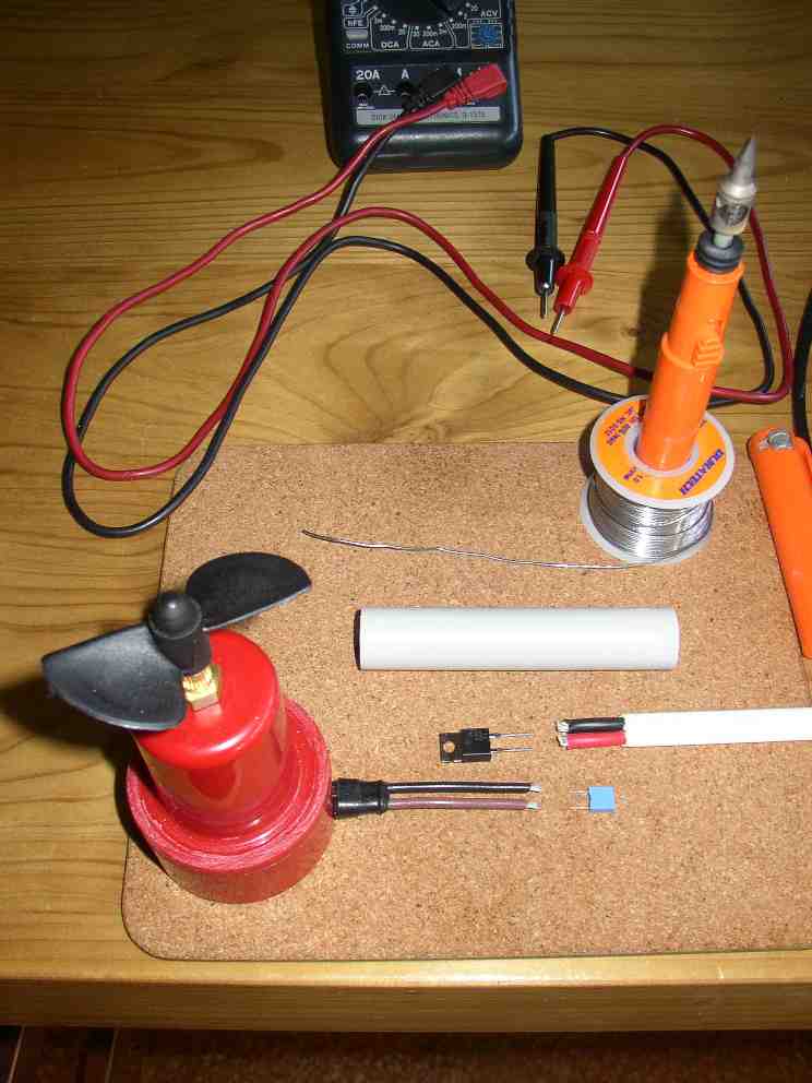 There’s a nice story about the propeller: In the course of developing this system I emailed various companies asking about buying small quantities of various exotic components or materials. In almost all cases it was like sending my email into a black hole. In the case of the propeller, the response was completely and delightfully the opposite. My local hobby shop had told me that the Australian importer did not carry the unusually large propeller that I found I needed, so I emailed the manufacturer, "Radio Active Manufacturing" in the UK, http://www.radioactivemfg.com, telling them what I wanted it for. In case you haven’t guessed, their name relates to radio controlled models, not that other nasty stuff. They immediately sent me four propellers by airmail, free of charge, and told me that I should find that the Australian importer should carry them in future. Three cheers for Radio Active!